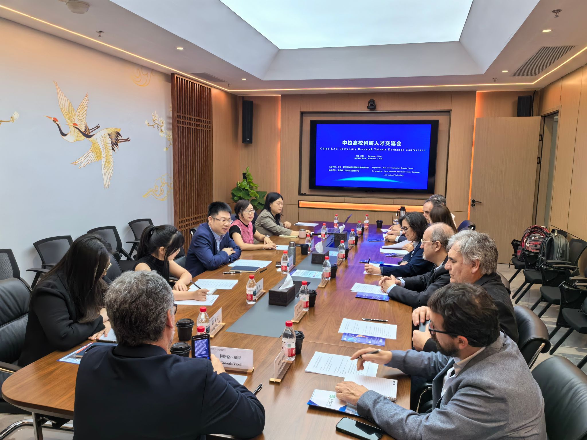 On the morning of November 2, a delegation from the Universidad de la República visited the China-LAC Technology Transfer Center. Both parties held an communicate meeting focusing on topics such as scientific research talent cultivation in higher education institutions across China and Latin America. Attendees included Mariana Seoane, Vice President of the Universidad de la República and Dean of the School of Dentistry; Alvaro Mombrú, Dean of the School of Chemistry; and Chen Baiman, Executive Director of the China-LAC Technology Transfer Center.